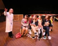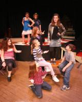 Posted by Kathy Lauer-Williams "Disney's High School Musical Jr." recreates the popular movie in a showcase of young performers at the Pennsylvania Playhouse in Bethlehem through Sunday. The show tells the story of Troy Bolton and Gabriella Montez, an unlikely couple from different cliques who connect when they both discover they like to sing. There is lots of singing in the show as well as energetic dance numbers where the cast of 28 featuring kids age 8 to 15 fill the stage. Based on the Disney Channel movie "High School Musical," the show is the second in a new series of "junior" productions at the playhouse designed for young actors. It is fun to watch the students who all so obviously enjoy what they are doing. Kimberly Casey, a freshman at Whitehall High School, is charming as math-whiz Gabriella and has a sweet singing voice. As Gabriella's love interest basketball player Troy, Nitshcmann eighth-grader Evan Burlew gives an understated quality to the conflicted student. Lynsey Jeffery, a seventh grader from Kutztown and Luke Csordas,a fifth grader from Macungie, shine as theater star Sharpay and her satorically dressed brother Ryan. The pair steal the scene every time they appear. Jeffrey is deliciosuly wicked as the show's resident bad girl and Csordas makes the most of his role as her yes man brother. Other standouts are Blake Dennis as the school DJ Jack Scott whose deadpan delivery of his lines drew plenty of laughs and Molly Kennedy, a Liberty freshman who gave an added dimension to her portrayal of Gabriella's braniac friend Taylor. Some of the young actors struggled a bit with their vocals but was redeemed during the cast's many ensemble numbers. Some of the funnier scenes included an impromptu method acting class during detention that had kids crawling and slithering around on the floor like animals, and the audition for the school musical in which a string of actors gave hilariously "bad" auditions. Lisa Suppen gave a humorous turn as Ms. Darbus the overenthusiastic theater teacher who was all too willing to collect the student's cell phones. The simple stage set that stood in as a gym, theater and classroom was effective and the direction by Wendy Borst and choreography by Stacy Gabel kept the action moving. |