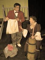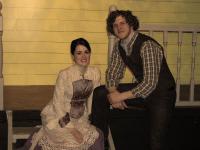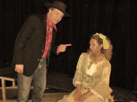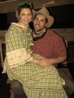 Charming 'Oklahoma's' a beautiful evening on stageBy Myra Yellin Outwater April 1, 2008 ''Oklahoma!,'' now at the Pennsylvania Playhouse, has been staged with wit, humanity and insight. Director Bill Mutimer has created a simplified, but charming vision of youthful innocence and romantic illusions. Mutimer has struck gold with a cast whose voices soar in Rodgers and Hammerstein classics -- ''The Surrey with the Fringe on Top,'' ''People Will Say We're in Love,'' ''I Cain't Say No'' and the grand finale, ''Oklahoma!'' From the moment you hear the offstage voice of Colin Hooker-Haring as Curly, singing ''Oh What a Beautiful Morning,'' you know that it will be a beautiful evening on stage. Hooker-Haring is a natural to play the young cowboy, so smitten with love that he is willing to sacrifice everything -- his saddle, his horse and even his gun -- to buy his true love a picnic basket. Hooker-Haring brings a boyish charm, a heroic bravado and a clear and thrilling voice to the role. Melissa Frey, who plays Laurey, his outspoken love, with a pert and sassy indecisiveness, has a voice to match as the two duel musically in ''People Will Say We're in Love.'' Frey is so eager to show her independence that she agrees to go to the picnic with Jud Frey, a man she detests and fears rather than let Curly know she loves him. Jim Tully brings a sulky humanity to the role of the melancholy Frey, making him less a threatening villain than an misunderstood misfit. And his duet with Curly, ''Pore Jud is Daid,'' is one of the show's musical highlights. Cindy Ernst is a marvelous no nonsense, heart of gold Aunt Eller, equally at home singing as she is spreading happiness among her feuding neighbors, the farmers and ranchers of early 20th-century Oklahoma. Marnie Santaniello is an enthusiastic and flirtatious Ado Annie. Santaniello steals the show every time she sashays on stage, shaking her ribbons as she flirts with suitors Will Parker and the peddler Ali Hakim. Joe Fortunato is well-cast as the gangly, clumsy and naïve Parker. Nick Englesson is wily and coy as the slippery peddler Hakim. Fred Broadbent is a gruff, cagey and take charge Andrew Carnes eager to get rid of his lovestruck daughter, Ado Annie. Jacob Nelson's lighting of the ballet scene dream dance adds an erotic tension to Lindsey Howard's interpretation of the famous DeMille choreography. It is enhanced by Heather Fox's graceful dancing as the dream Laurey. Mutimer has a gift for staging large ensembles and