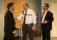 Pennsylvania Playhouse presents 'worthwhile' performance of "Glengarry Glen Ross" By Dave Howell Special to The Morning Call 12:17 PM EDT, June 9, 2009 "Glengarry Glen Ross" sounds idyllic, as it is the combined title of two fictional real estate developments similar to many of those lovely-sounding developments in our area. However, David Mamet's drama, which takes place in Chicago in 1984, is anything but calm and pleasant. The one and a half hour, two-act play, now being presented by Pennsylvania Playhouse, is the story of desperate, driven men. Four real estate agents are in a sales contest. The winner gets a Cadillac, while the losers get fired. The losers are trapped in a cycle, since the best sellers get all the good sales leads. The play has memorable acting that will stay with you for a long time, along with tight direction by Ralph Montesano. The characters make all the difference here, and their aggression, fears, anxieties, and duplicity all come alive to create a realistic story that holds you all the way. There's a great deal of mature language, but it is necessary to show the brutality and ruthlessness of the world created by Mamet. Vibrant, uncompromising characterizations go beyond the real estate business to show how aggression and lack of morality affect these men and everything around them. The play seems even more relevent now than it in the 1980s, with today's subprime loans taking the place of the checks obtained by Mamet's salesmen. "Glengarry" opens in a Chinese restaurant, with Shelly Levene (Joe Pionegro) and office manager John Williamson (Tim Brown). Levene, a former hotshot who has lost his spark, needs better leads from Williamson. His friendliness turns into wheedling, begging, and, finally, bribery. The latter fails only because Levene does not have cash on the spot. After they leave, salesmen Dave Moss (Mike Febbo) and George Aaronow (Jerry Brucker) discuss robbing their office. The aggressive Moss's hypothetical situation turns out to be a serious proposal for a partnership in crime with the ineffectual Aaronow. The next scene in the restaurant shows top salesman Richard Roma (Gene Connelly) talking to James Lingk (Seth Rohrbach) in the next booth. Roma rambles on about life and other subjects to Lingk, buddying up to him and, it turns out, cultivating him as a sales prospect. Act II takes place in the just-robbed real estate office, where the staff is being questioned by Detective Baylen (Robert Trexler). The salesmen are more concerned about leads and contracts than the robbery itself. There are many confrontations amidst Roma's attempt to fool Lingk, who has shown up to cancel the deal at his wife's insistence.