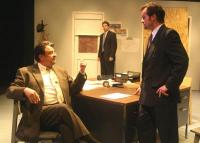 Pennsylvania Playhouse presents 'worthwhile' performance of "Glengarry Glen Ross" By Dave Howell Special to The Morning Call 12:17 PM EDT, June 9, 2009 "Glengarry Glen Ross" sounds idyllic, as it is the combined title of two fictional real estate developments similar to many of those lovely-sounding developments in our area. However, David Mamet's drama, which takes place in Chicago in 1984, is anything but calm and pleasant. The one and a half hour, two-act play, now being presented by Pennsylvania Playhouse, is the story of desperate, driven men. Four real estate agents are in a sales contest. The winner gets a Cadillac, while the losers get fired. The losers are trapped in a cycle, since the best sellers get all the good sales leads. The play has memorable acting that will stay with you for a long time, along with tight direction by Ralph Montesano. The characters make all the difference here, and their aggression, fears, anxieties, and duplicity all come alive to create a realistic story that holds you all the way. There's a great deal of mature language, but it is necessary to show the brutality and ruthlessness of the world created by Mamet. Vibrant, uncompromising characterizations go beyond the real estate business to show how aggression and lack of morality affect these men and everything around them. The play seems even more relevent now than it in the 1980s, with today's subprime loans taking the place of the checks obtained by Mamet's salesmen. "Glengarry" opens in a Chinese restaurant, with Shelly Levene (Joe Pionegro) and office manager John Williamson (Tim Brown). Levene, a former hotshot who has lost his spark, needs better leads from Williamson. His friendliness turns into wheedling, begging, and, finally, bribery. The latter fails only because Levene does not have cash on the spot. After they leave, salesmen Dave Moss (Mike Febbo) and George Aaronow (Jerry Brucker) discuss robbing their office. The aggressive Moss's hypothetical situation turns out to be a serious proposal for a partnership in crime with the ineffectual Aaronow. The next scene in the restaurant shows top salesman Richard Roma (Gene Connelly) talking to James Lingk (Seth Rohrbach) in the next booth. Roma rambles on about life and other subjects to Lingk, buddying up to him and, it turns out, cultivating him as a sales prospect. Act II takes place in the just-robbed real estate office, where the staff is being questioned by Detective Baylen (Robert Trexler). The salesmen are more concerned about leads and contracts than the robbery itself. There are many confrontations amidst Roma's attempt to fool Lingk, who has shown up to cancel the deal at his wife's insistence.