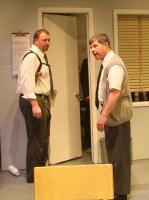 Pennsylvania Playhouse presents 'worthwhile' performance of "Glengarry Glen Ross" By Dave Howell Special to The Morning Call 12:17 PM EDT, June 9, 2009 "Glengarry Glen Ross" sounds idyllic, as it is the combined title of two fictional real estate developments similar to many of those lovely-sounding developments in our area. However, David Mamet's drama, which takes place in Chicago in 1984, is anything but calm and pleasant. The one and a half hour, two-act play, now being presented by Pennsylvania Playhouse, is the story of desperate, driven men. Four real estate agents are in a sales contest. The winner gets a Cadillac, while the losers get fired. The losers are trapped in a cycle, since the best sellers get all the good sales leads. The play has memorable acting that will stay with you for a long time, along with tight direction by Ralph Montesano. The characters make all the difference here, and their aggression, fears, anxieties, and duplicity all come alive to create a realistic story that holds you all the way. There's a great deal of mature language, but it is necessary to show the brutality and ruthlessness of the world created by Mamet. Vibrant, uncompromising characterizations go beyond the real estate business to show how aggression and lack of morality affect these men and everything around them. The play seems even more relevent now than it in the 1980s, with today's subprime loans taking the place of the checks obtained by Mamet's salesmen. "Glengarry" opens in a Chinese restaurant, with Shelly Levene (Joe Pionegro) and office manager John Williamson (Tim Brown). Levene, a former hotshot who has lost his spark, needs better leads from Williamson. His friendliness turns into wheedling, begging, and, finally, bribery. The latter fails only because Levene does not have cash on the spot. After they leave, salesmen Dave Moss (Mike Febbo) and George Aaronow (Jerry Brucker) discuss robbing their office. The aggressive Moss's hypothetical situation turns out to be a serious proposal for a partnership in crime with the ineffectual Aaronow. The next scene in the restaurant shows top salesman Richard Roma (Gene Connelly) talking to James Lingk (Seth Rohrbach) in the next booth. Roma rambles on about life and other subjects to Lingk, buddying up to him and, it turns out, cultivating him as a sales prospect. Act II takes place in the just-robbed real estate office, where the staff is being questioned by Detective Baylen (Robert Trexler). The salesmen are more concerned about leads and contracts than the robbery itself. There are many confrontations amidst Roma's attempt to fool Lingk, who has shown up to cancel the deal at his wife's insistence.
