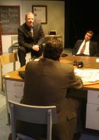 Pennsylvania Playhouse presents 'worthwhile' performance of "Glengarry Glen Ross" By Dave Howell Special to The Morning Call 12:17 PM EDT, June 9, 2009 "Glengarry Glen Ross" sounds idyllic, as it is the combined title of two fictional real estate developments similar to many of those lovely-sounding developments in our area. However, David Mamet's drama, which takes place in Chicago in 1984, is anything but calm and pleasant. The one and a half hour, two-act play, now being presented by Pennsylvania Playhouse, is the story of desperate, driven men. Four real estate agents are in a sales contest. The winner gets a Cadillac, while the losers get fired. The losers are trapped in a cycle, since the best sellers get all the good sales leads. The play has memorable acting that will stay with you for a long time, along with tight direction by Ralph Montesano. The characters make all the difference here, and their aggression, fears, anxieties, and duplicity all come alive to create a realistic story that holds you all the way. There's a great deal of mature language, but it is necessary to show the brutality and ruthlessness of the world created by Mamet. Vibrant, uncompromising characterizations go beyond the real estate business to show how aggression and lack of morality affect these men and everything around them. The play seems even more relevent now than it in the 1980s, with today's subprime loans taking the place of the checks obtained by Mamet's salesmen. "Glengarry" opens in a Chinese restaurant, with Shelly Levene (Joe Pionegro) and office manager John Williamson (Tim Brown). Levene, a former hotshot who has lost his spark, needs better leads from Williamson. His friendliness turns into wheedling, begging, and, finally, bribery. The latter fails only because Levene does not have cash on the spot. After they leave, salesmen Dave Moss (Mike Febbo) and George Aaronow (Jerry Brucker) discuss robbing their office. The aggressive Moss's hypothetical situation turns out to be a serious proposal for a partnership in crime with the ineffectual Aaronow. The next scene in the restaurant shows top salesman Richard Roma (Gene Connelly) talking to James Lingk (Seth Rohrbach) in the next booth. Roma rambles on about life and other subjects to Lingk, buddying up to him and, it turns out, cultivating him as a sales prospect. Act II takes place in the just-robbed real estate office, where the staff is being questioned by Detective Baylen (Robert Trexler). The salesmen are more concerned about leads and contracts than the robbery itself. There are many confrontations amidst Roma's attempt to fool Lingk, who has shown up to cancel the deal at his wife's insistence.