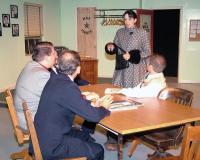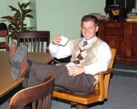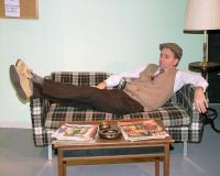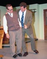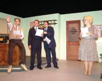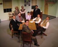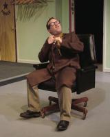 Fortunately, there are better gags than that one in Neil Simon's ''Laughter on the 23rd Floor,'' now at the Bethlehem theater. They flow freely in this story about the writing staff of Sid Caesar's ''Your Show of Shows'' television classic. The liberal use of the ''f---'' and ''s---'' words are surprising for a Simon play (it opened on Broadway in 1993, decades later than his more familiar works). But other Simon trademarks are here. He mixes shtick with seriousness and schmaltz. And he uses a fictional portrayal of himself, occasionally addressing the audience to explain characters or set a scene. As the play opens, Lucas Brickman (Jeff Chirico, based on the real life Simon) has just begun to work for Max Prince (Pat Kelly). The writers drift in one by one: Milt Field (Chip Rohrbach), who distinguishes himself by his outlandish wardrobe; Val Skolsky (Gary Boyer), the Russian emigre and head writer; Brian Doyle (Larry Harris), who brags about selling yet unwritten screenplays; the straight-laced by comparison Kenny Franks (Chip Williams); secretary and wanna-be comedy writer Helen (Rebecca Wenhold), and Carol Wyman (Rebecca Pieper), who reluctantly adjusts to the male-oriented atmosphere. The gags flow throughout. An example: ''He's accused of being a card-carrying communist.'' ''He had cards printed?'' Serious elements are also introduced, as the McCarthy witch-hunt has begun, and NBC is interfering with Prince's show. After Prince shows up, he turns out to be more insane than his writers, punching holes in the wall and ranting about, well, everything. Actually one writer might be crazier: the always late, hypochondriac Ira Stone (Peter Sanchez). The cast does a great job with these sometimes hard roles. Kelly does not quite have the bombast you would expect of the real-life Caesar, but he deftly captures both his hyperactive tension and his love for his writers. Sanchez does a wonderful Woody Allen, who wrote for Caesar. Simon based Sanchez's character on Mel Brooks, but that should not matter unless you have strong feelings about the Allen vs. Brooks film controversy. Director Ralph Montesano has created a show that puts the audience in the palm of his hand. They must get heavy after awhile. ''Laughter on the 23rd Floor,'' 8 p.m. Friday and Saturday, 2 p.m. Sunday, through June 19, Pennsylvania Playhouse, Illick's Mill Road, Bethlehem. Tickets: $18; $15, seniors and children under 19 Friday and Sunday only. 610-865-6665, http://www.paplayhouse.org . Dave Howell is a freelance writer. |