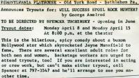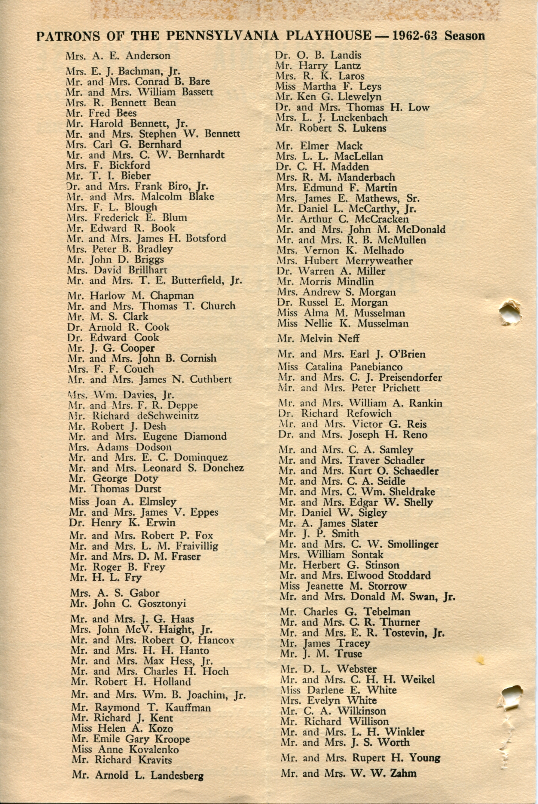 Set construction and decor | Marilyn Flick, Daniel Sigley, James Botsford, Jean Botsford, Donald Webster, Walter Bristol, James Price, John Simons, Robert Moser, Diane Nitowski, Ron Tostevin, Hunt Mathews, Robert Zahm |