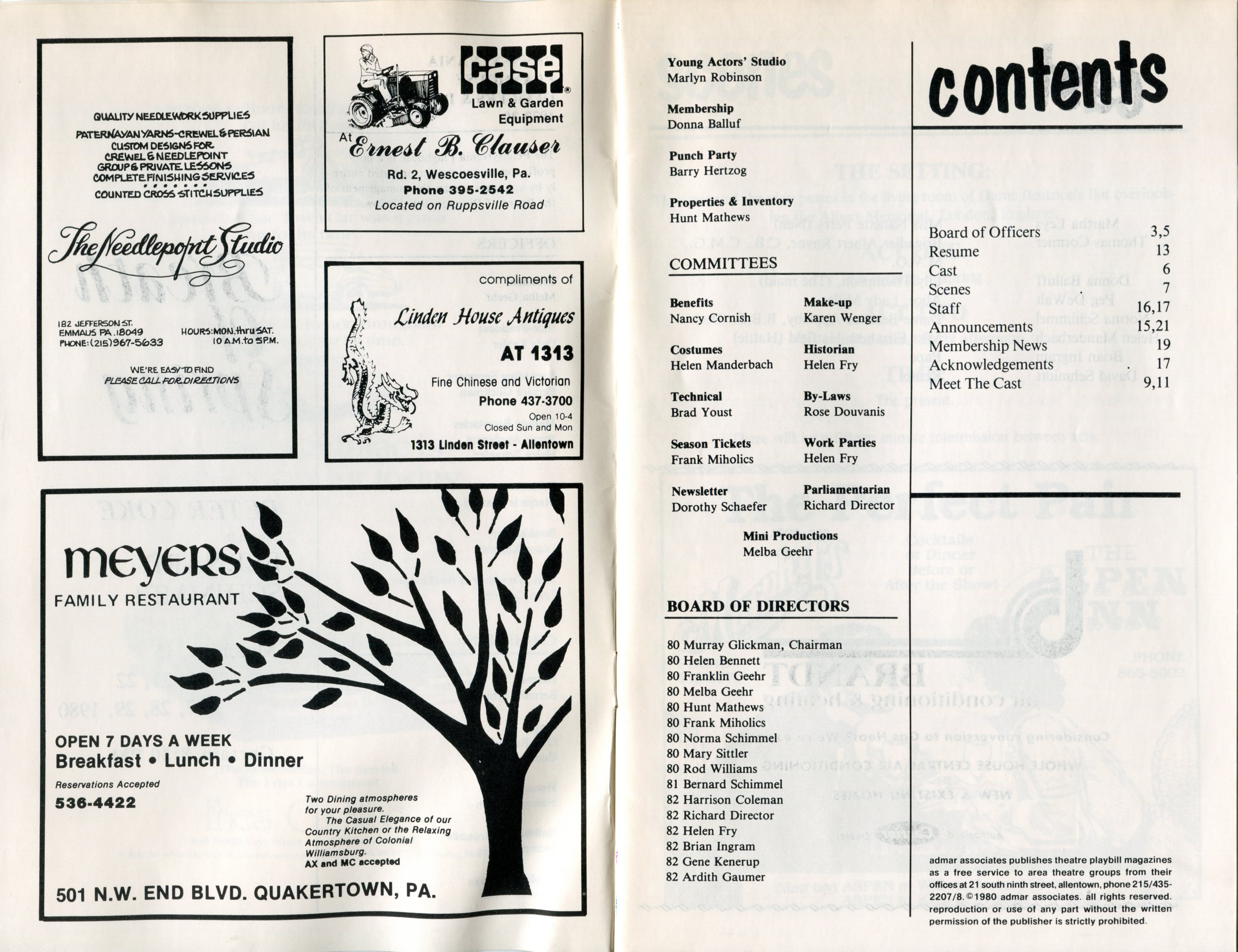 Set Construction & Painting | Brian & Ed Ingram, Don Martusiak, Richard & Sherry Director, Karen Jacque, George Krasnov, Leon Bonam, Tom Cormier, Jean Regan |