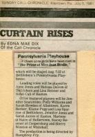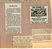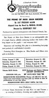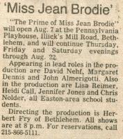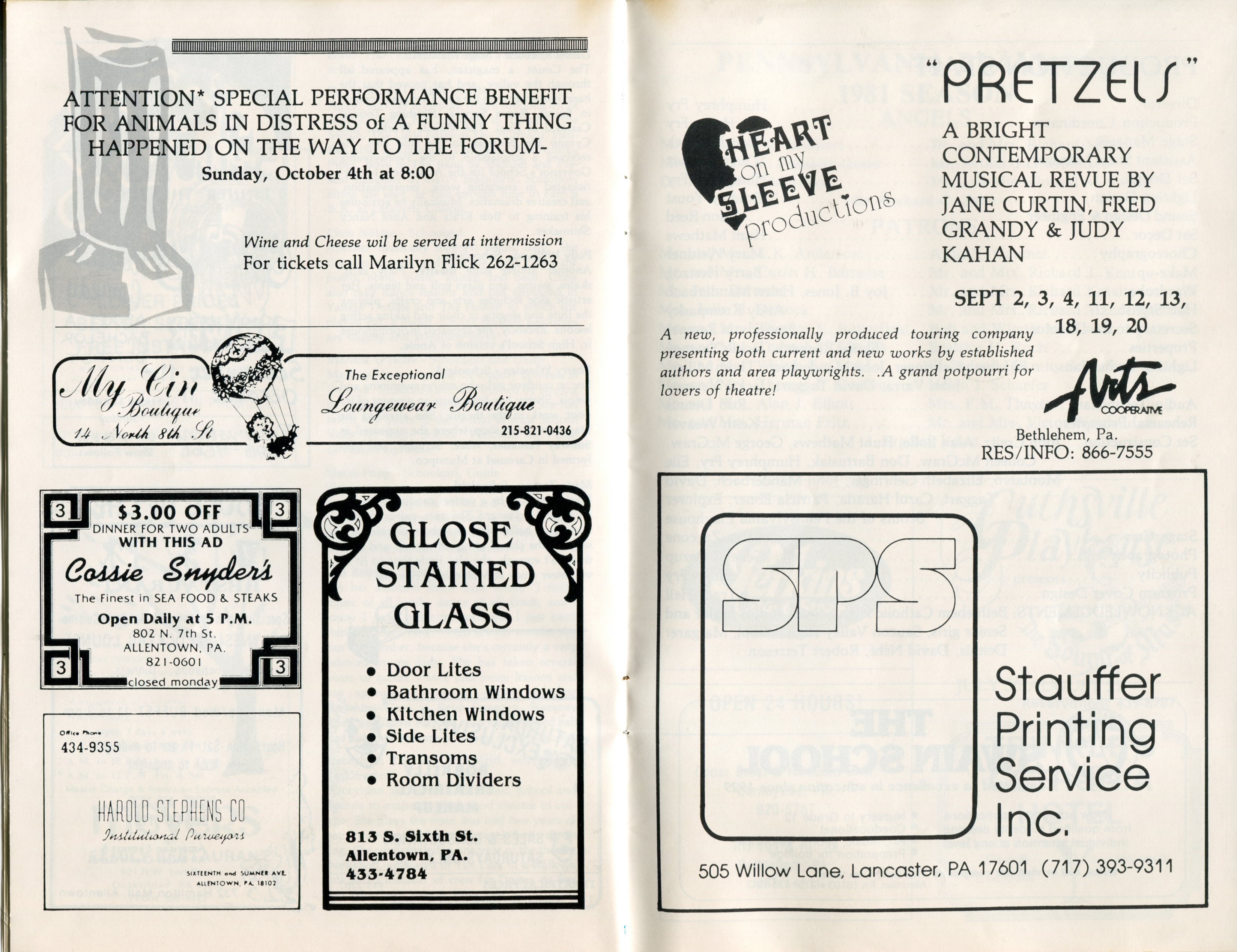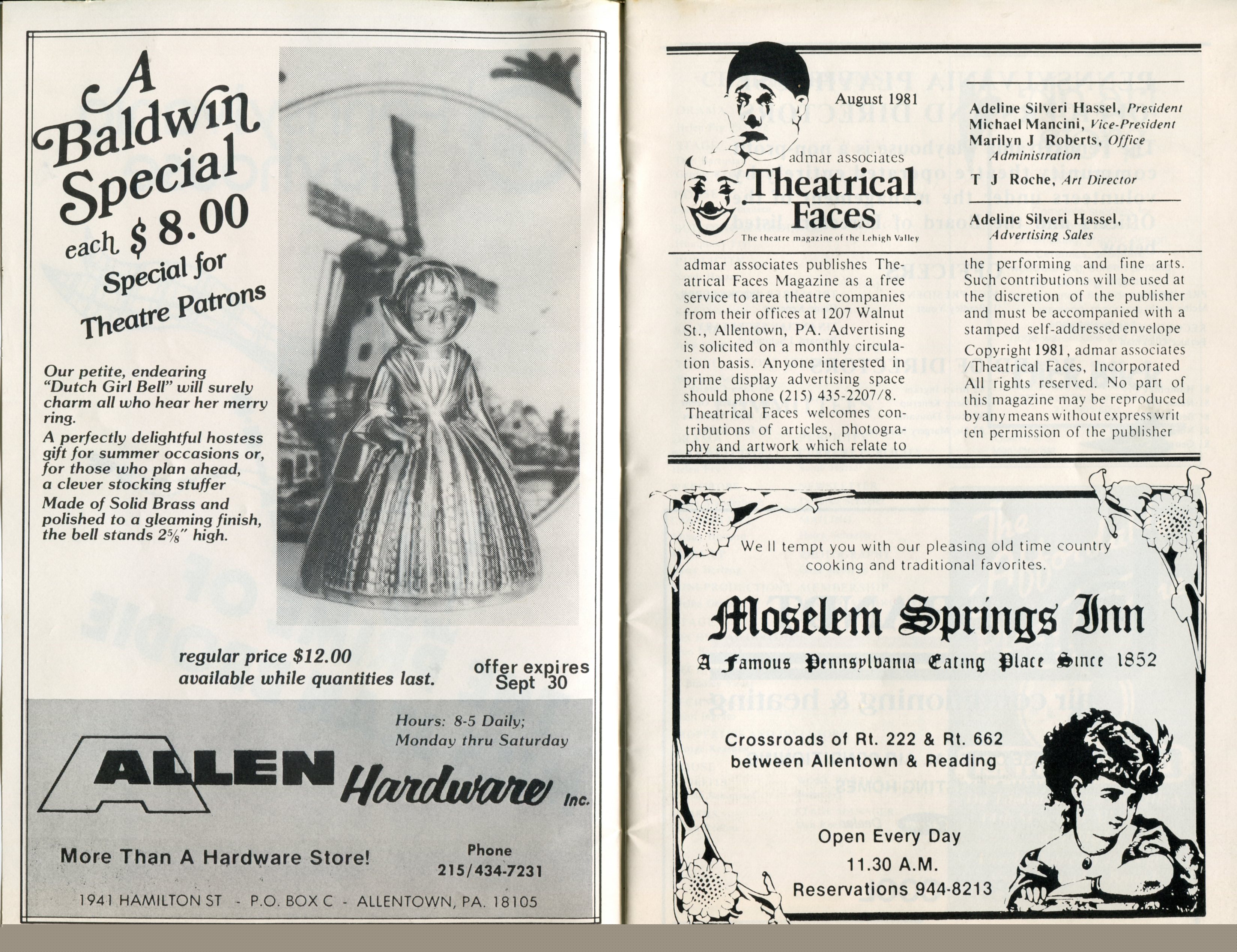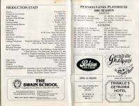 Set Construction | John Creitz, Alan Bolle, Hunt Mathews, George McGraw, Colleen McGraw, Don Bartusiak, Humphrey Fry, Elie Montalvo, Elizabeth Gehringer, John Manderbach, David Taggart, Carol Harada, Patricia Ebner, Explorer Scouts of the Pennsylvania Playhouse |