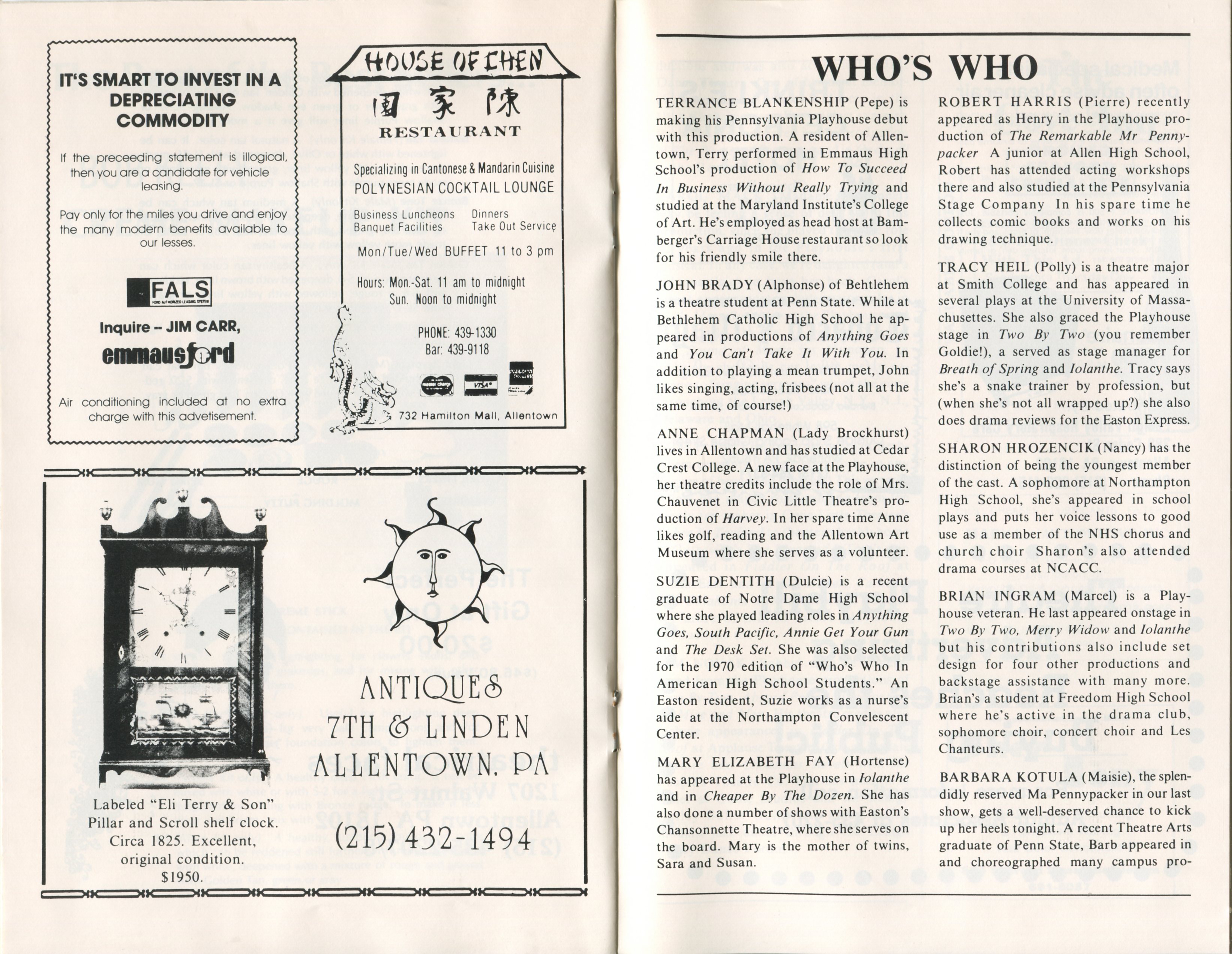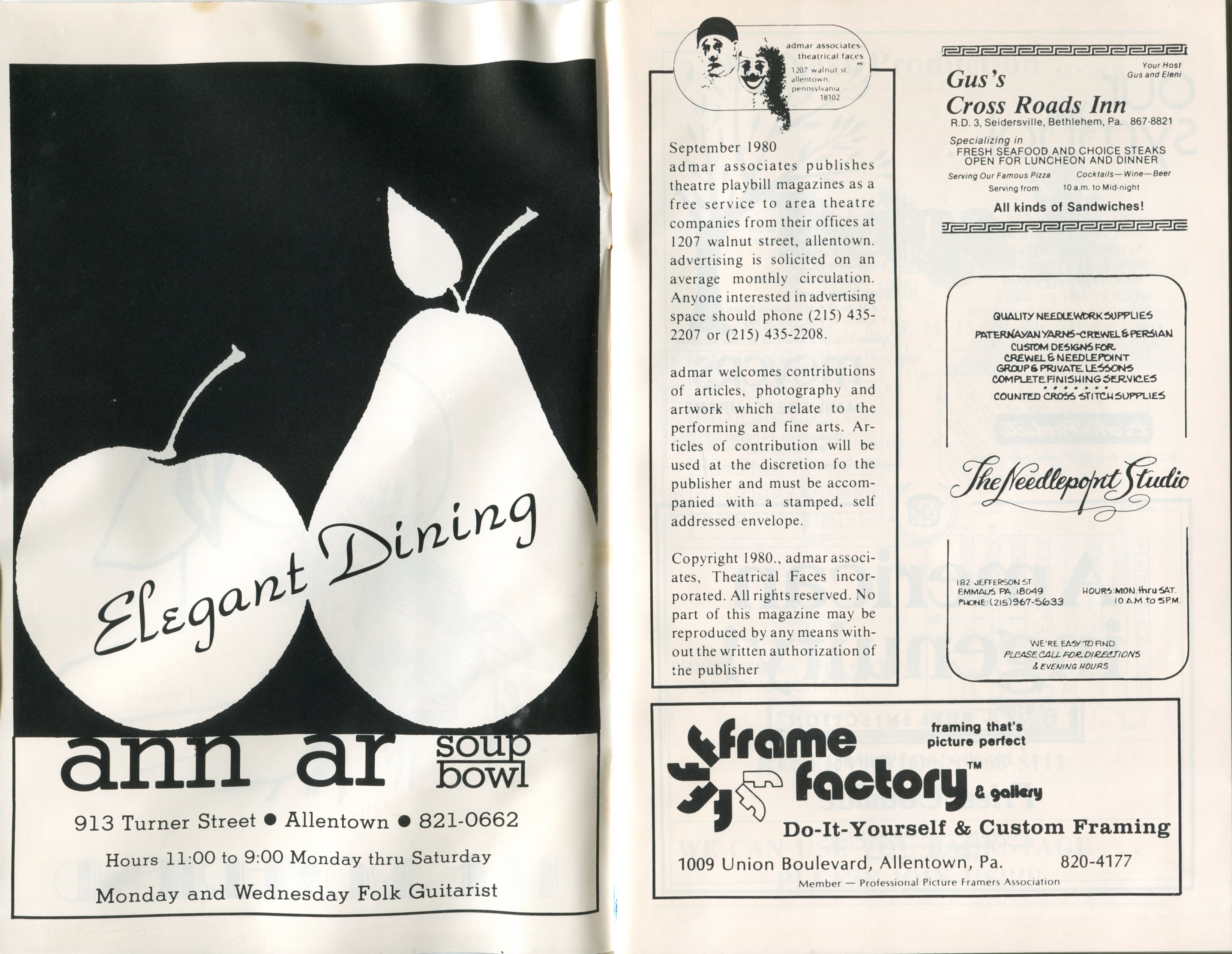 Set Construction | Win Kincaid, Andy Cook, David Taggart, Richard Brown, Don Bartusiak, Franklin Geehr, Karen Jacques, Wayne Miller, Elizabeth Gehringer, Sherry Director, Jeff Stainbrok, Brian Ingram, John Cornish |