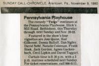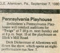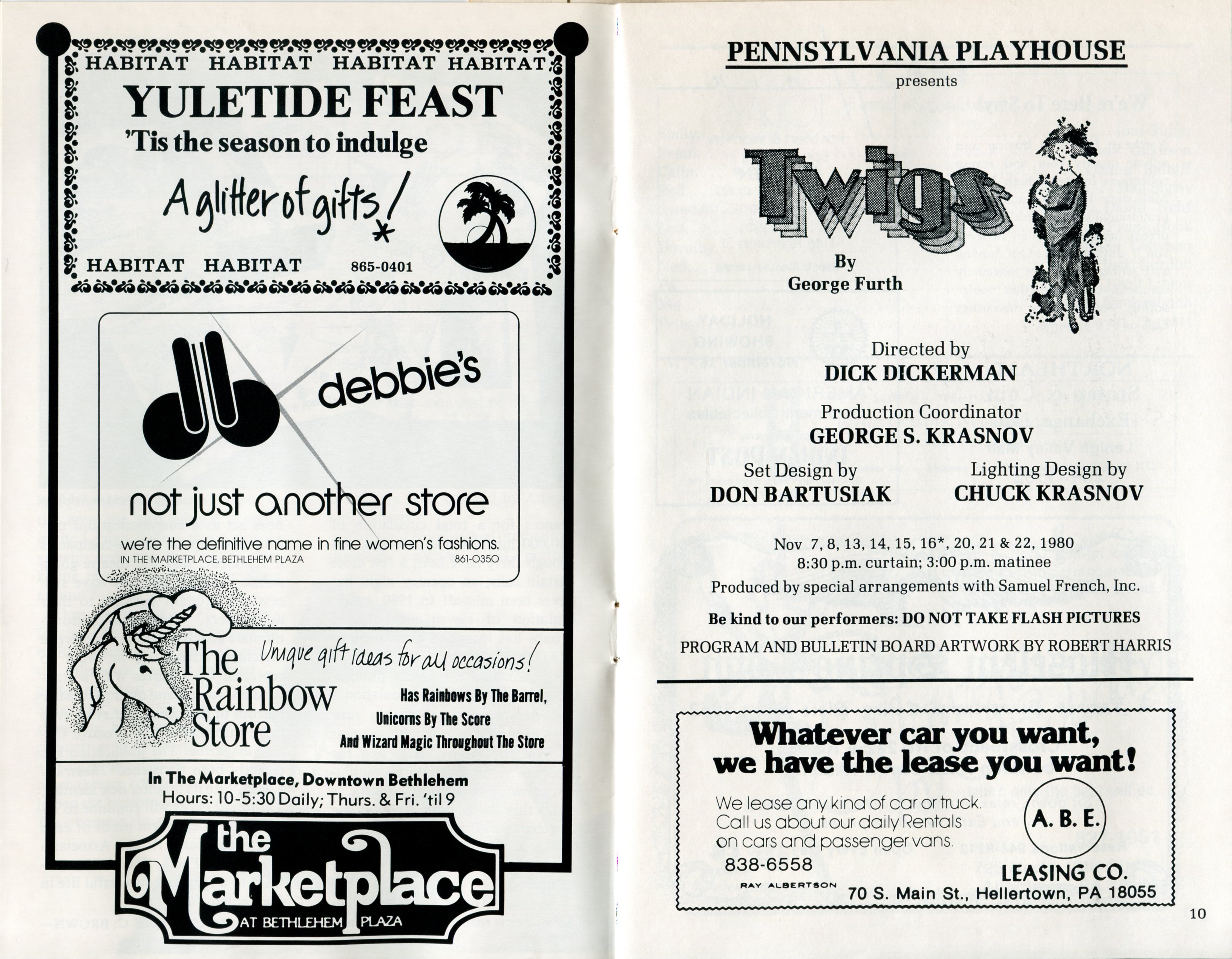 Set Construction | Don Bartusiak, George S. Krasnov, Richard Brown, John Manderbach, John Creitz, Brian Ingram, Humphrey Fry, Seth Cornish, Elizabeth Gehringer, Betsy Nepon, Joe Cusimano, Bill Stauffer, Andy Crook, Mark Diamond, Karen Jacques, Jean Reagan |